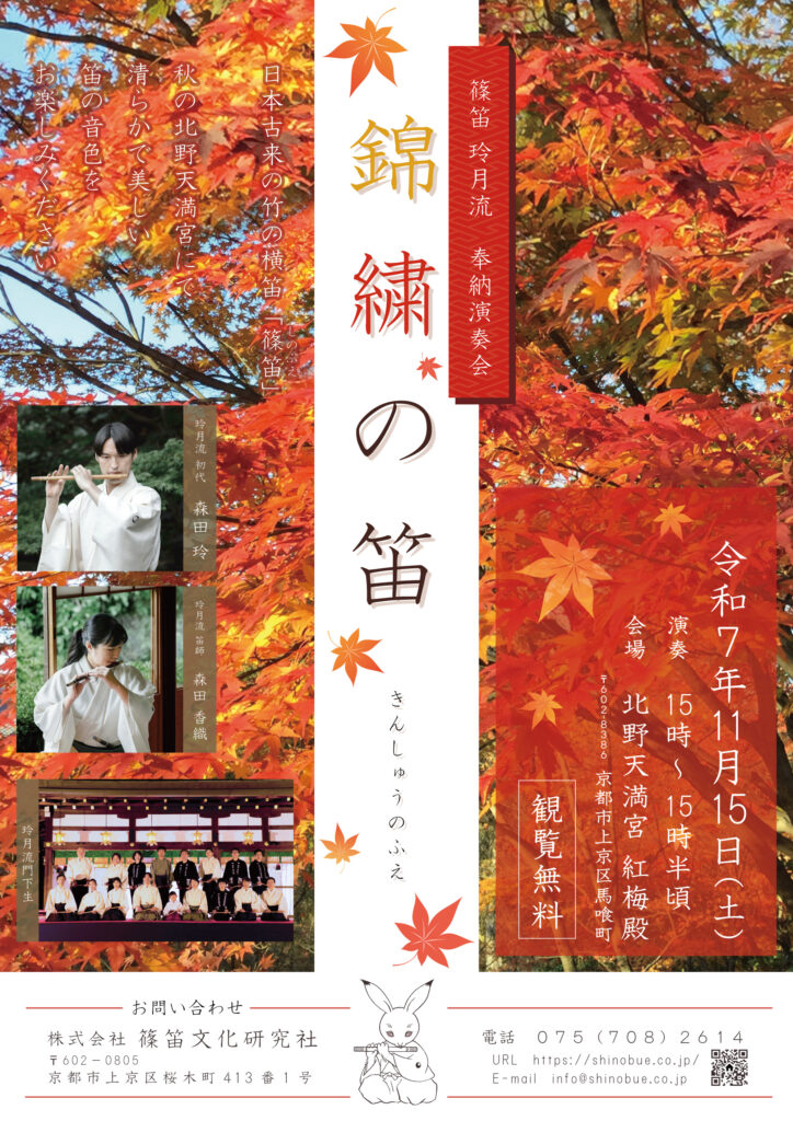 11/15(土)錦繍(きんしゅう)の笛・北野天満宮 奉納演奏